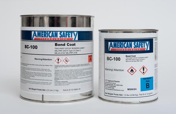 BC-100 Bond Coat is a proprietary product used with MIL-PRF-3135 military specifications in meeting underlayment requirements; the BC-100 Bond Coat should be used on decking requiring a bond coat prior to the application of an epoxy underlayment or membrane decking systems